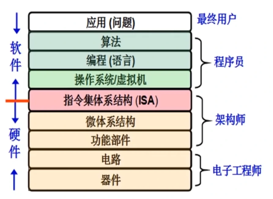 系统程序员:工作在 ISA 层次,必须对 ISA 非常了解。ISA 处于软件和硬件的交界面,是对硬件的抽象。软件的所有功能都建立在 ISA 的基础上。ISA 是最重要的层次
