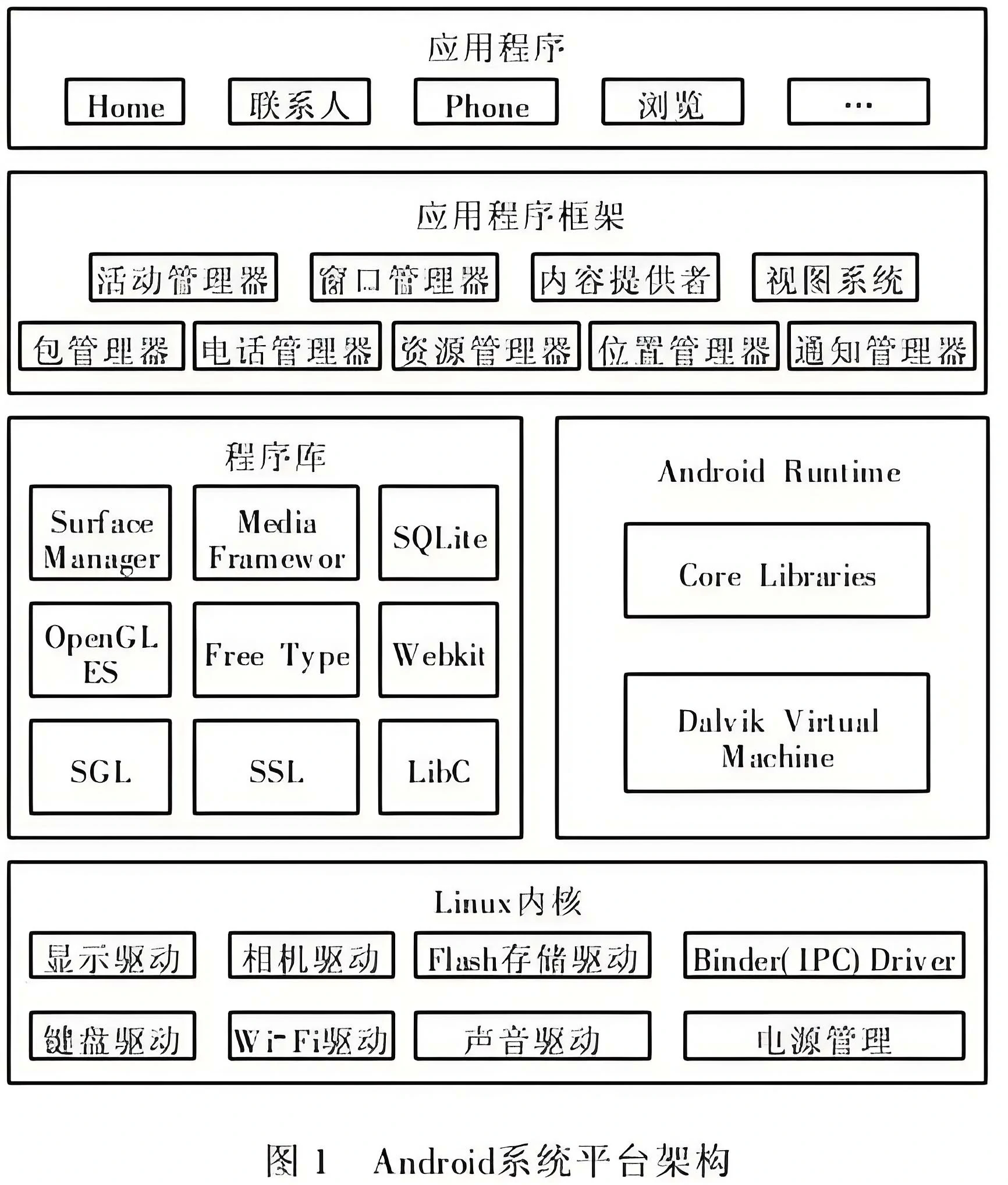 Android 是基于 Linux 内核的软件平台和操作系统,采用了 HAL(hardware abstract layer,硬件抽象层)架构,主要分为四部分: