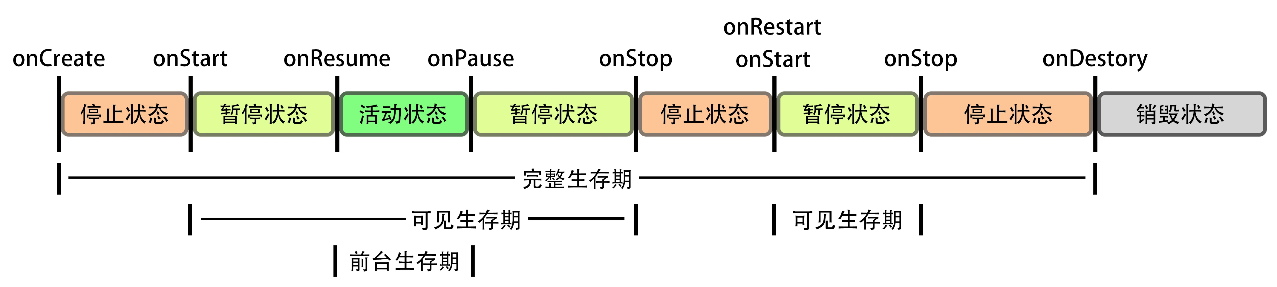 finish()方法即可销毁该 Activity从 onCreate 到 onDestroy 的过程就是 Activity 的完整生存期