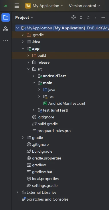 - res:存放项目中的所有资源,包括图片文件(drawable)、布局文件(layout)、图标文件(minimap)、数据文件(values)